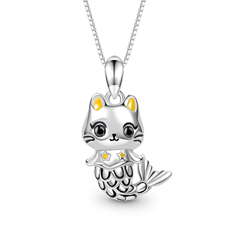 The cat mermaid necklace is handcrafted from 925 sterling silver with tiny yellow ears, big eyes, a cute little mouth, and a lifelike fishtail. A cute gift for its lovers!
