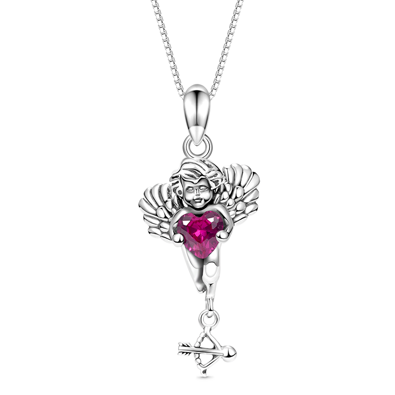 Gnoce Embrace Collection Eros Cupid Embraces Fuxia Heart-shaped Gem Necklace. Cupid has always been hailed as a symbol of love. According to legend, he is a naughty little god with wings on his body. Once his arrow is inserted into the hearts of young men and women, it will make them deeply in love.