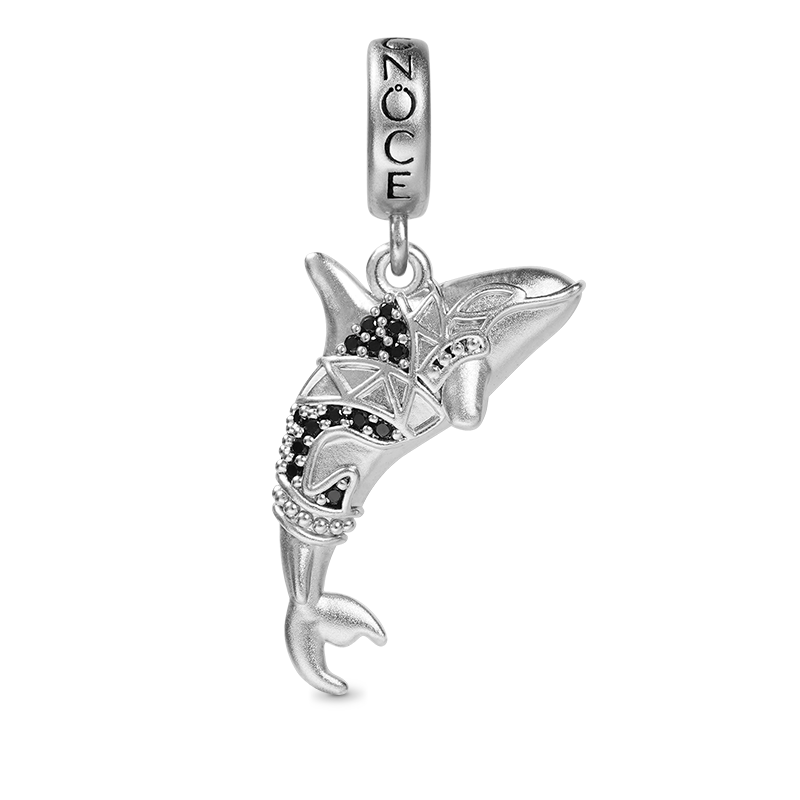 Killer Whale Orca Pendant Dangle Charm Sterling Silver Inlaid with Black Stones