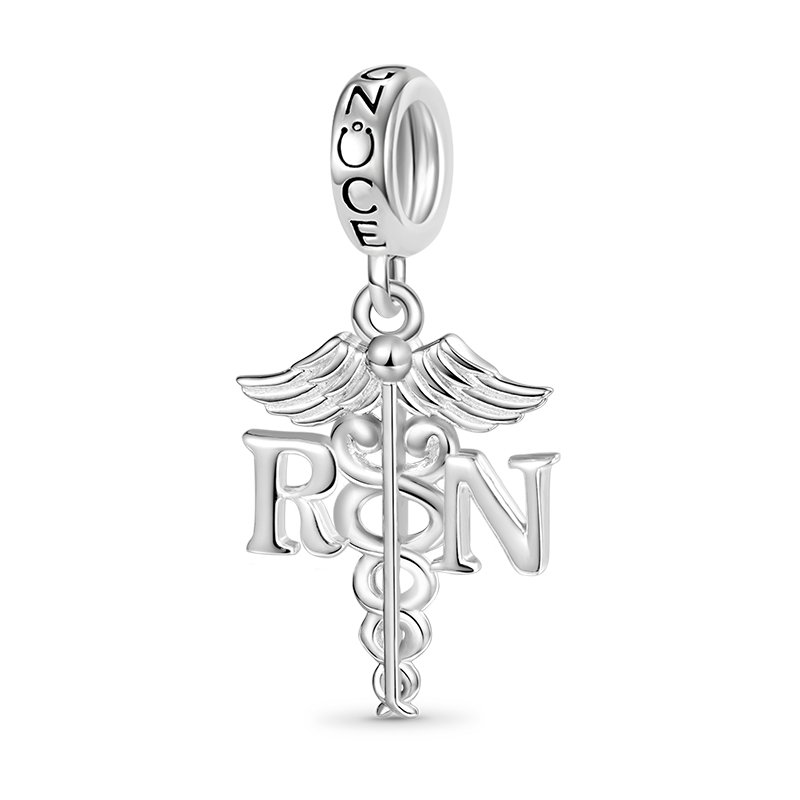 Featuring the initials RN for registered nurse, and the traditional medical corps symbol of two snakes around a winged staff, this 925 sterling silver pays tribute to nurses everywhere. This medicine symbol of caduceus charm bracelet is designed for medical people, and is the best jewelry gift for white coat angels.