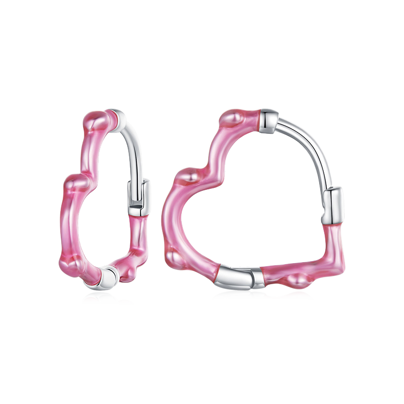 Gnoce Pink Heart Bamboo Joint Hoop Earrings