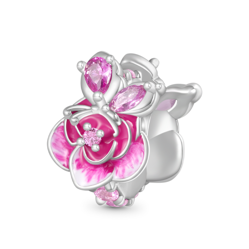 Our Pink Roses Charm features exquisite double-sided three-dimensional rose designs. This charming piece captures the essence of femininity and grace, making it a perfect accessory for those who appreciate the allure of roses.
